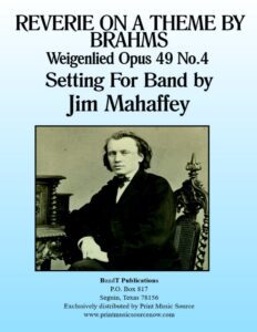 Wiegenlied Opus 49 #4, also known as Brahm’s Lullaby or Cradle Song is one of Brahm’s most famous works. It was first published in 1868 and dedicated to a close friend on the birth of her first child. This setting for band by Jim Mahaffey brings the sensitive melody and lush harmonies into the realm of developing concert bands.
